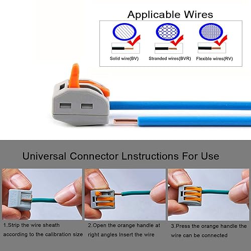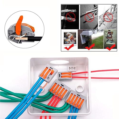 QitinDasen 45Pcs Leva-Dado Cavo Connettori Set, Connettore Conduttore Compatto, Morsettiera Cavo Connettore Molla Rapido (KV222-412/413 / 414/415)