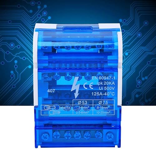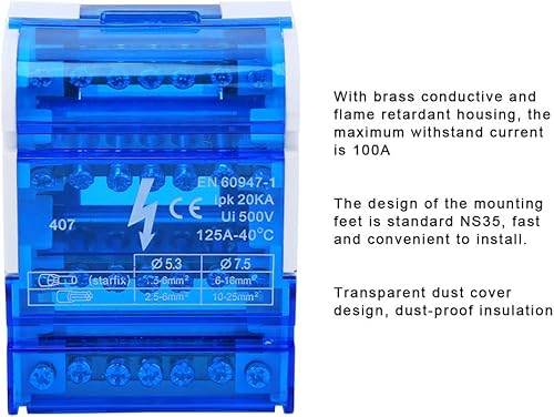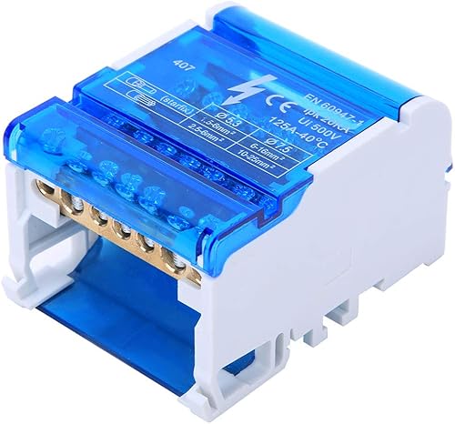 Scatola di Giunzione 407 per Scatola di Distribuzione Terminale a 4 Livelli su Guida Din con Coperchio Trasparente, Alloggiamento Conduttivo in Ottone e Ritardante di Fiamma per
