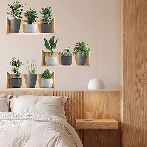 Adesivi Murali Piante 3D,3 pz Adesivi Murali Soggiorno 3D,Vasi di Fiori Adesivi Murali Decalcomania,Adesivo da parete 3D Piante Verdi in PVC per Camera da Letto,Cucina,Ufficio,Corridoio,Deco da Parete