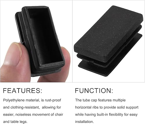 Tappi di Chiusura Rettangolari (30 x 15mm) 24pz, Tappi di Chiusura Filettati per Inserti di Tubi Rettangolari in Plastica - per Gambe di Mobili Tavoli Sedie, Nero