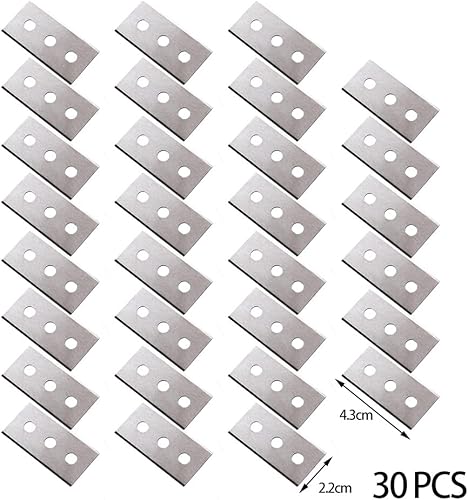30 Pezzi Lame di Ricambio per Raschietto, Lame di Tre Fori per Raschietti, Lame in Acciaio al Carbonio per Piano Cottura e Forno, 0,2mm