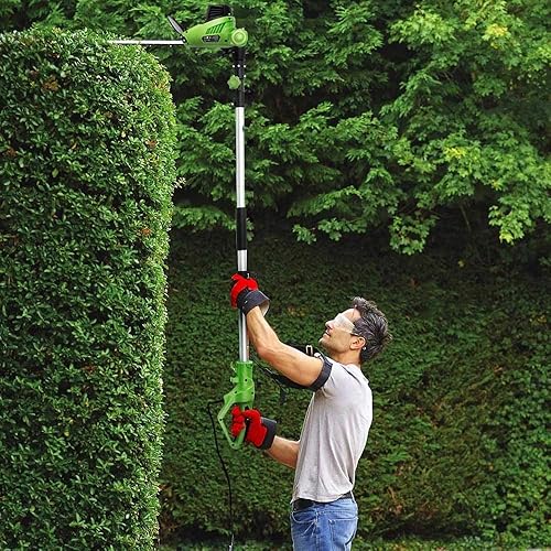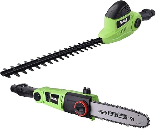 BAKAJI Tagliasiepi Telescopico Elettrico con Asta Estensibile, Taglia Siepi Lama 41 cm con Inclinazione, Lama Regolabile Manutenzione Giardino Tagliabordi Decespugliatore (700W con Motosega 2in1)