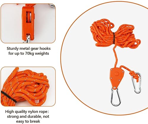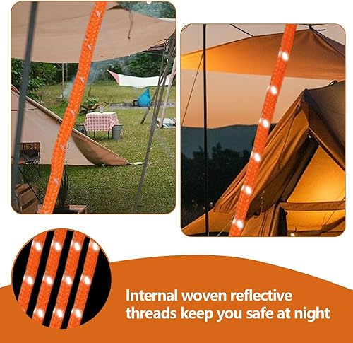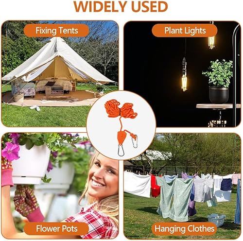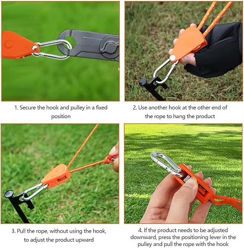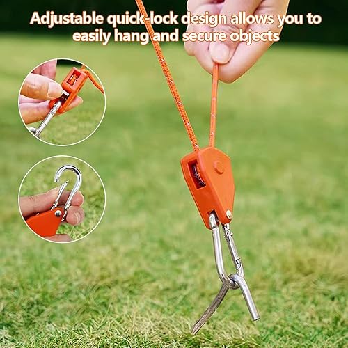 2 Pezzi Riflettenti Rope Ratchet Con Gancio 4 M, Arancione 1/8 Cricchetto Di Corda Regolabili Capacità Di Carico 68 Kg/Paio, Nylon Cricchetto A Corda Supporto per Lampada Da Pianta, Tenda, Escursioni