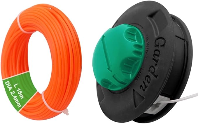 Testa di ricambio universale M10 x 1,25 con filettatura sinistra per decespugliatore, linea di uscita automatica con filo per decespugliatore da 15 m e 2,4 mm, facile velocità di carico