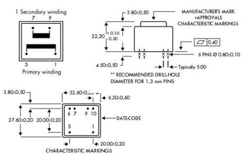 Trasformatore incapsulato resinato Myrra 44328, Primario 230V, Secondario 12V, Potenza 1,5 VA