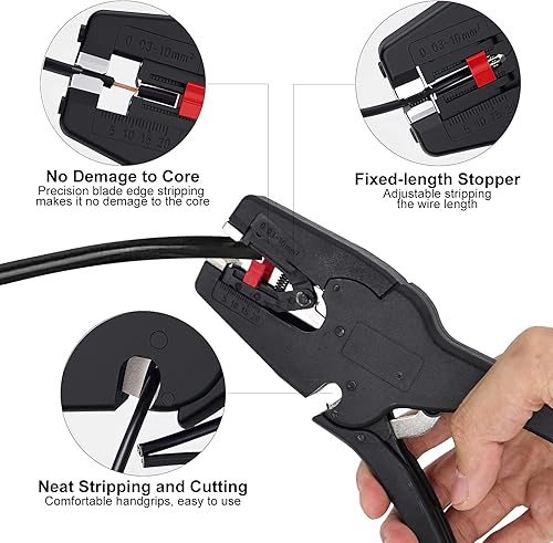 Pinza spelafili automatica, multifunzione, 2 in 1, strumento manuale autoregolante, spelafili 0,03 – 10 mm² Wire Stripper Pinze Nero