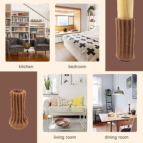 Set da 16 Pezzi Coprigambe per Sedie, Calzini Sedie Antiscivolo, Copri Gambe Sedie per Mobili, Antiscivolo, per Evitare Graffi e Rumori, Adatti per Gambe di Sedie da 6 cm a 18 cm, Marrone