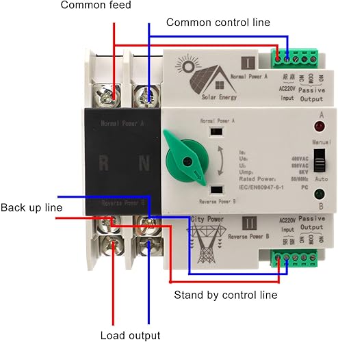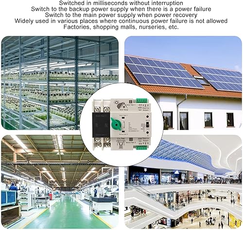 2P AC 220V ATS, Interruttore Convertitore Automatico A Doppia Alimentazione Domestica, Commutatore di Energia Solare, Controller di Circuito Senza Interruzione, per Alimentazione di Backup (100 A)