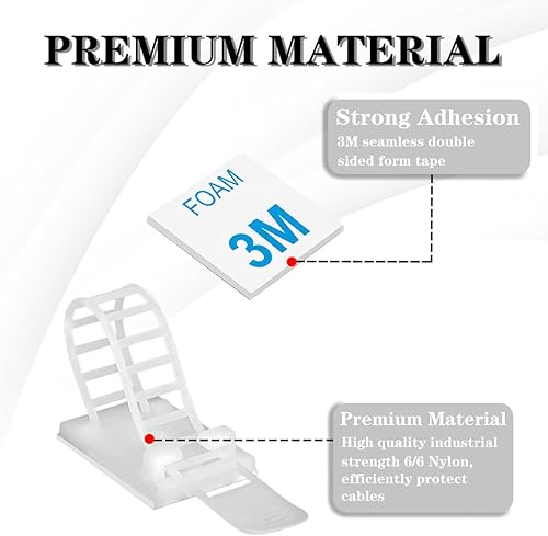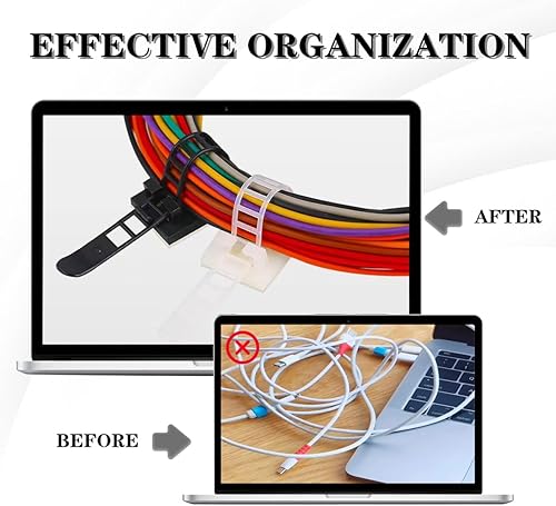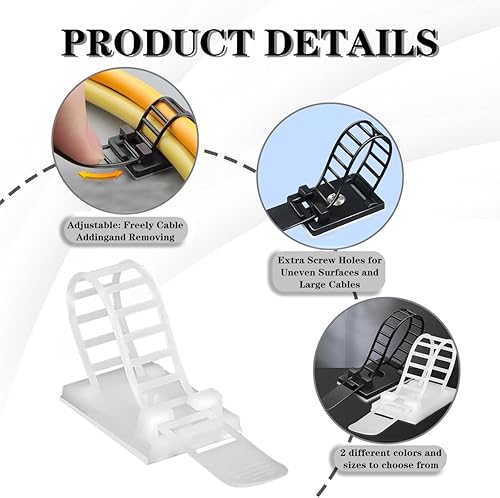 Fascetta per Cavi Autoadesiva, Clip Cavo Autoadesivo 50 Pezzi (2 Dimensioni), Ganci Fermacavi Autoadesivi Con Adesivo - Passante per Cavi da Scrivania, Muro, Pareti - Nero