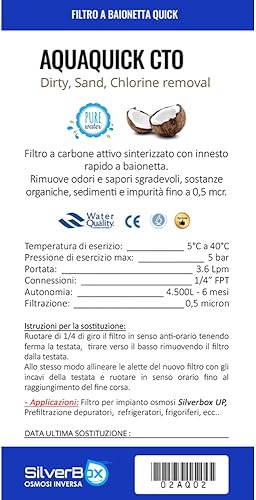 AcquaHOME® AQUAQUICK KIT RICAMBIO FILTRO BI-STADIO ORIGINALE PER IMPIANTO OSMOSI INVERSA SILVERBOX UP DEPURATORE MADE IN ITALY
