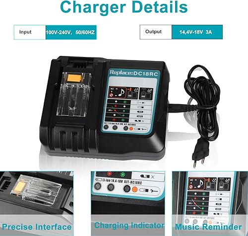 2 x 18V 5.5Ah BL1850B Batterie per Makita con Caricatore DC18RC per Makita Batteria BL1860 BL1850 BL1850B BL1840 BL1830 BL1820 LXT-400