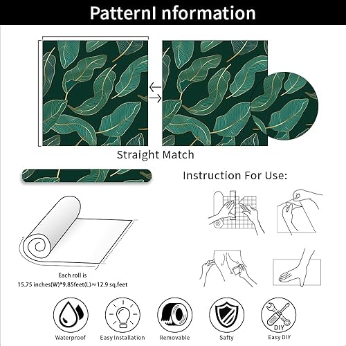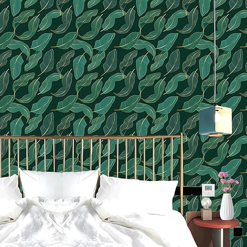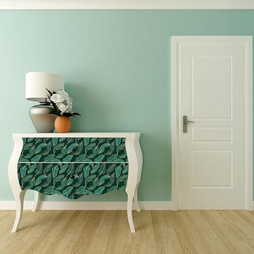 Carta da parati autoadesiva verde foglie, carta da parati floreale, vintage, verde, carta da parati per camera da letto, motivo floreale, peel and stick, 40 x 300 cm