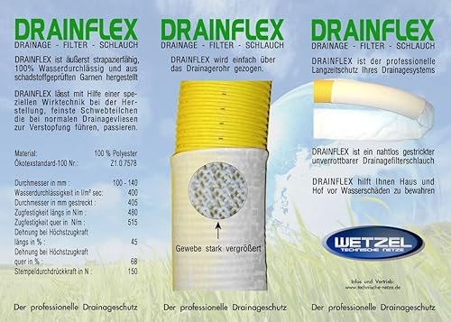Setaflex - Tubo di Scarico per Drenaggio 10 m, Forato, Filtro da 10 m, Colore: Giallo