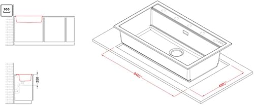 Elleci LGB36040 Lavello da Incasso GRANITEK, Nero, 84 x 48 cm