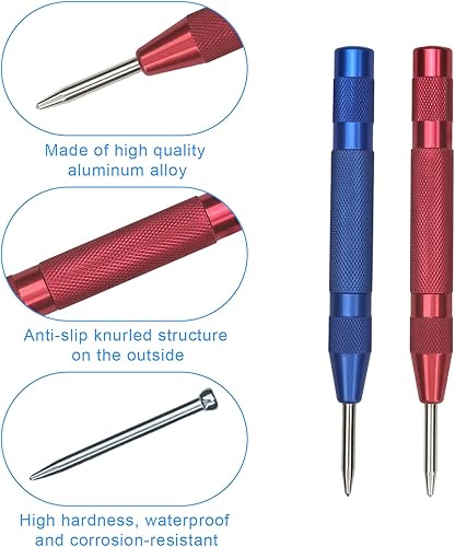 2 Pezzi Punzoni per Metallo, AMONENZ 130mm Punzonatrice Automatica, con 3 Pezzi Punta di Ricambio, Punzone a Molla, per Metallo Tenero, Legno, Vetro