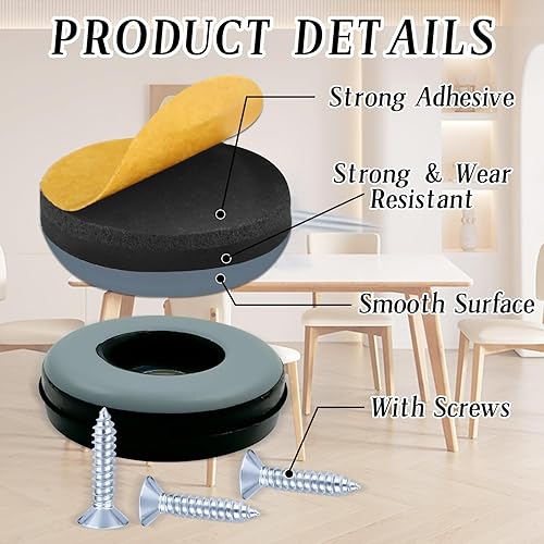32 Pezzi Silenzioso PTFE Scivoli per Sedie, 22mm Tipo di Vite/Autoadesivo Feltrini in Teflon, Liscio Piedini per Mobili in Teflon con 16 Pezzi Vite, Pavimenti Scivoli per Tappeti Protezione dei Mobili