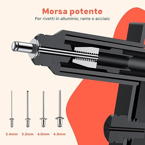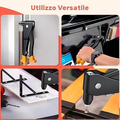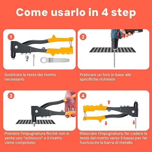 Rivettatrice Manuale 240mm per Rivetti in Alluminio, Rame e Acciaio – Rivettatrice in Alluminio con Manici Ergonomici e Ganasce Intercambiabili - Rivettatrice a Pinza Cassetta Attrezzi
