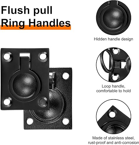 2Pz Maniglia ad Anello ad Incasso, 1,89 Pollici x 1,5 Pollici Maniglia a Incasso Rettangolare in Acciaio Inossidabile Con Viti per Mobili, Barche, Nero