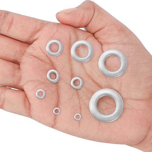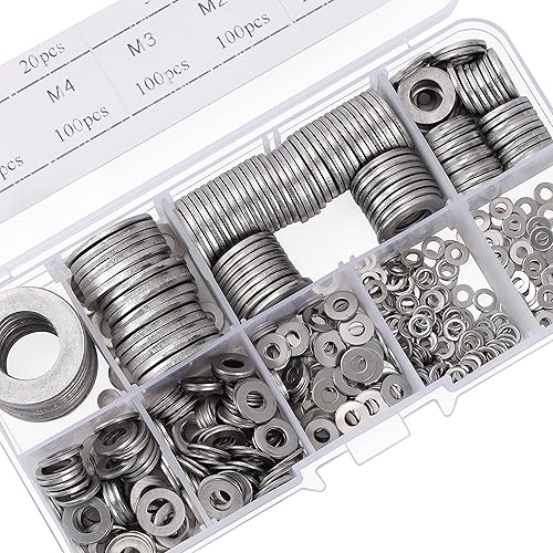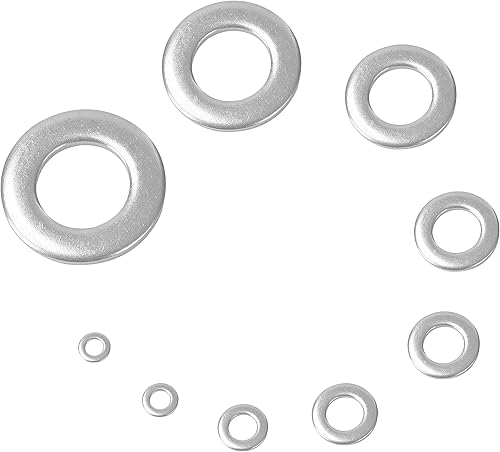 Rondelle Acciaio Inox con Scatola (580 Rondelle Piatte) - 9 Misure da M2, M2,5, M3, M4, M5, M6, M8, M10 e M12 - Rondelle Alzaporta Rotonde per Riparazioni, Fabbrica, Decorazioni per Casa