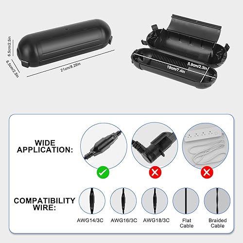 Scatola per cavi impermeabile IP44 per esterni, impermeabile, cassaforte per protezione da umidità e pioggia per prolunga, giardino, utensili elettrici, decorazioni per vacanze, colore nero