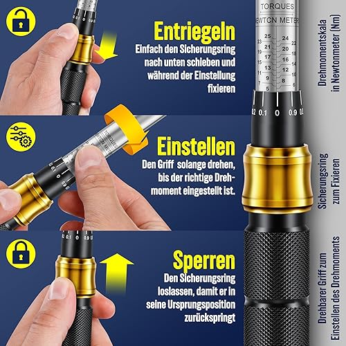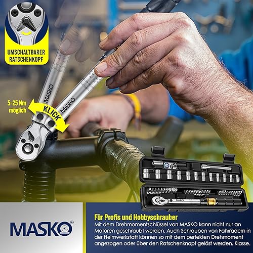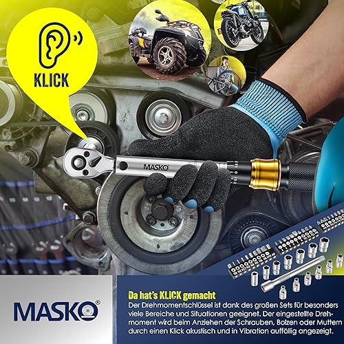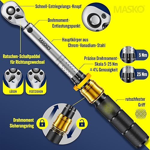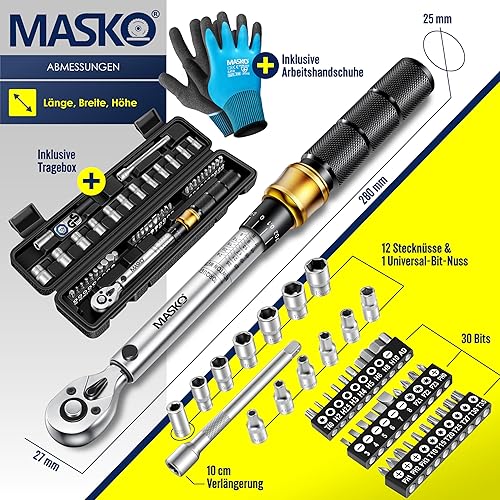 Set di Chiavi Dinamometriche 45 pezzi per Auto, Bici e Moto 1/4 di pollice 5-25Nm incl. Guanti, Presa magnetica per Candela Prese con asta di Prolunga 100mm +/- 4% di tolleranza