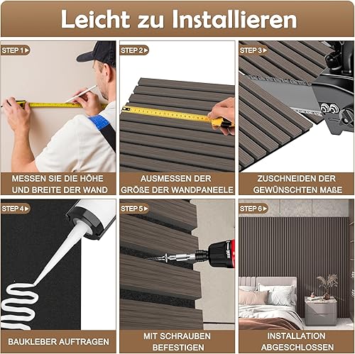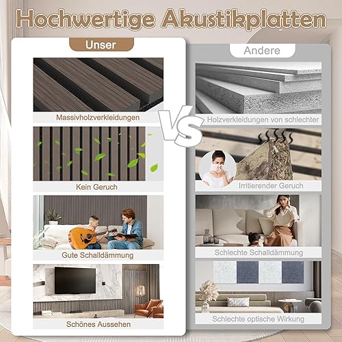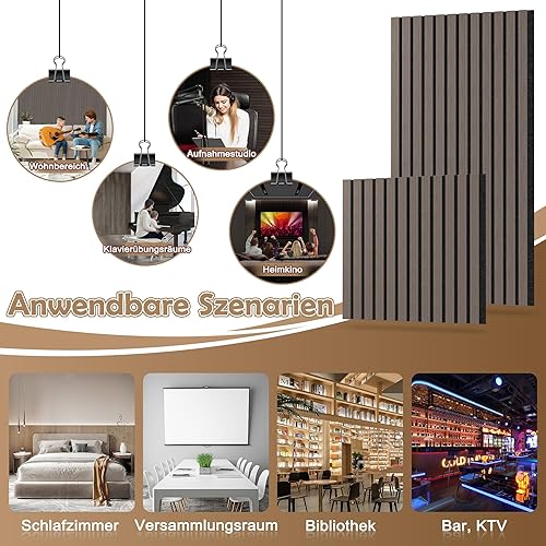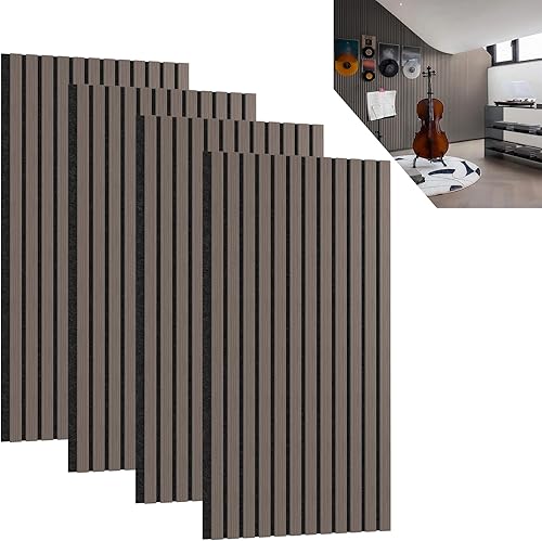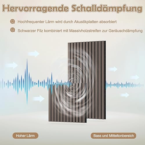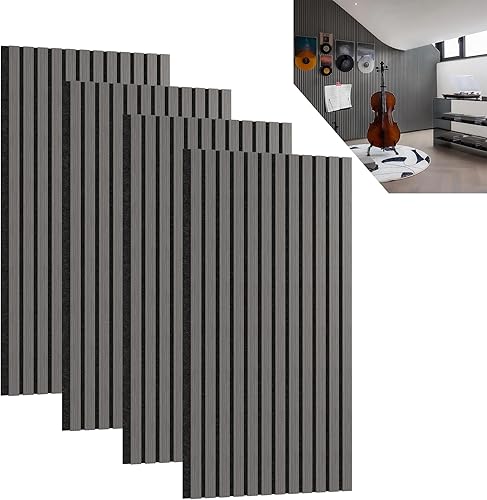 Set di 4 pannelli acustici in legno 3D, da parete, in vero legno di quercia, in feltro acustico, 120 x 60 cm, pannelli acustici, per corridoio, soggiorno, ufficio, antracite