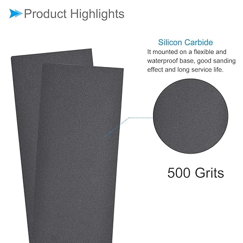 Fogli Abrasivi Bagnata Asciutta, 9' x 3,6' Grana 500 Fogli Carta Vetrata al Carburo di Silicio - (Applicazioni: per Cartongesso Legno Metallo), 10pz