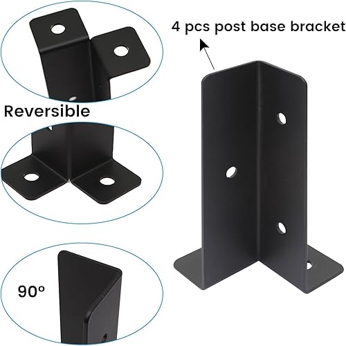 4 pezzi Manicotto avvitabile 4 x 4 Supporto per pali Piastra di base Manicotto per palo Paletto per recinzione con piastra di base Manicotto di ancoraggio per pali quadrati in legno