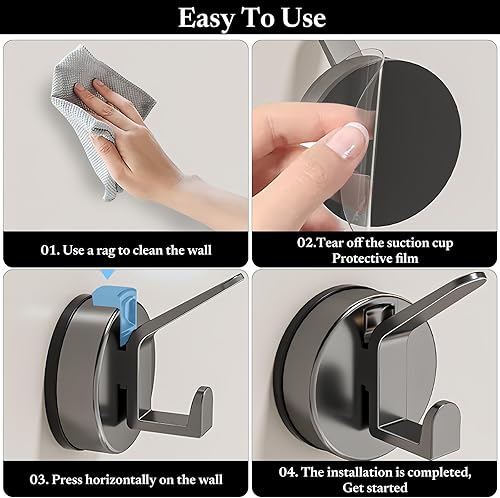 4 Gancio Accappatoio Doccia Gancio Antiruggine Ventosa Ganci Adesivi Ventose con Gancio Porta Asciugamani Ventosa Appendi Strofinacci Cucina Adatto per Cucina,Bagno e Camera da Letto