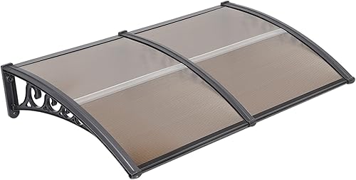 Pensilina da Esterno in Policarbonato e Alluminio, Tettoia per Finestre e Porte,Policarbonato e Alluminio per Porte e Finestre, Tettoia da Esterno con Kit Montaggio,100*200 cm marrone