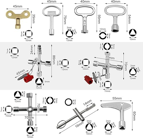 Set di 10 Chiave Universale Chiave Quadrata Contatore Chiave Contatore Gas Adatto per Rubinetti Cruscotti Armadi di Comando Ascensori Manutenzione Idraulica Manutenzione Elettrodomestici Manutenzione