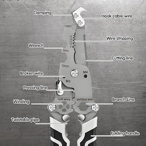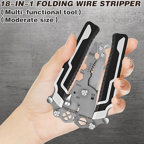 18 in 1 Spellafili pieghevole Spellafili multifunzione Pinza crimpatrice,Quick Mech Tools Strumento crimpatrice pieghevole,Multiutensile per elettricisti,Facile da trasportare per riparazioni,Pinze