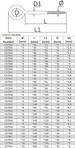 C57956 - Set di 5 ganci per avvitare Ø8x140mm - golfari autofilettanti chiusi - viti a occhio - in acciaio - colore argento