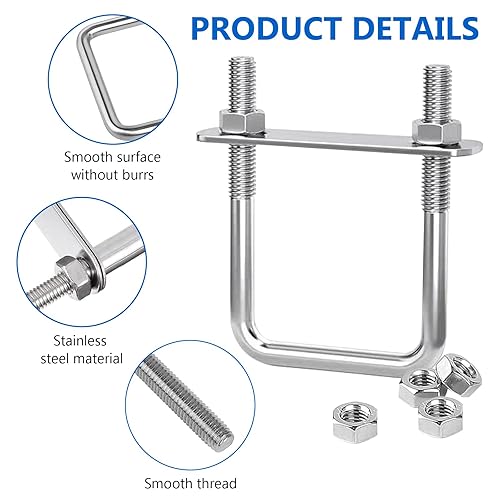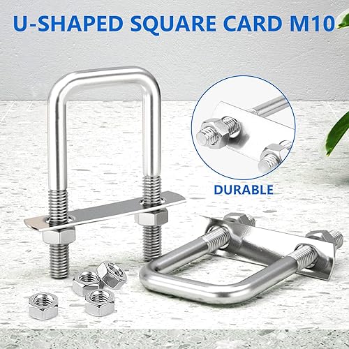 4 viti da stiro M10, 80 mm x 150 mm, bulloni a U con 8 contropiastre, bulloni a U in acciaio inox per il fissaggio di recinzione, tubo di fissaggio, traino auto