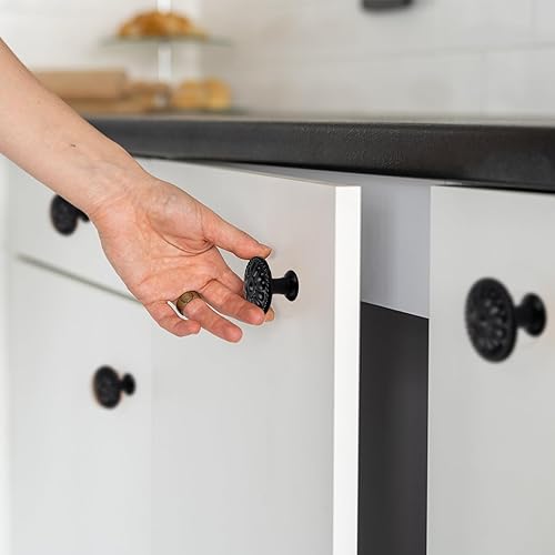Pomelli per Mobili Rotondo, Pomelli per Cassetti, Nero Opaco Pomelli, Maniglie per Mobili da Cucina, Retro Pomolo per Mobile, 10 Pezzi Pomelli Rotondi da 30 mm per Porte di Mobili con Viti