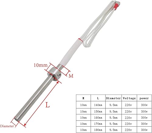 Resistenza stufa pellet con vite 300w 220v diametro 9.5mm candeletta accensione 140 150 160 170 180 mm (Lunghezza 140mm)