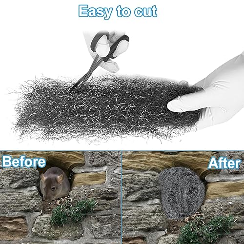 3 pezzi di lana d'acciaio con forbici, 3m efficace contro i topi con guanti da lavoro forbici efficace flessibile in acciaio inox fine contro roditori lana d'acciaio per fori e crepe