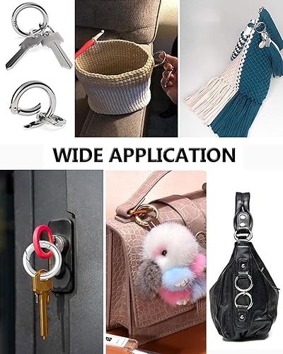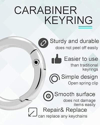 KGDUYC 16 Pezzi O Ring Metallo Portachiavi Clip Anello Diviso Mini Circle Clip Molla Snap Clip Ganci Rotonda Moschettone a Molla Gancio per Portafogli Hardware Battenti Porta - argento