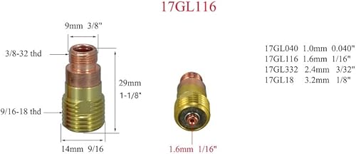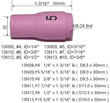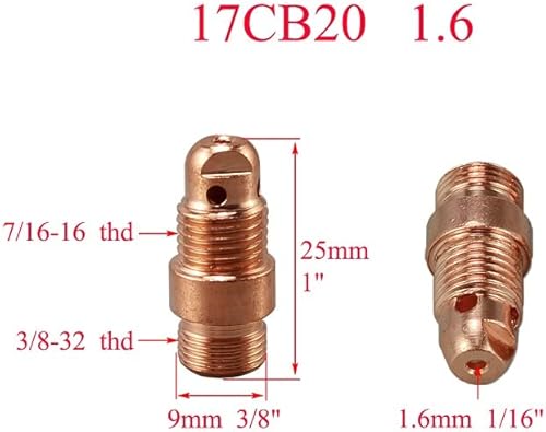 RIVERWELD 21pcs Tig Stubby Gas Lens & Collets Body 17GL020 17CB20 (1,6 mm) Coppa isolata #10 Kit di dimensioni assortite WP 17 18 26 Tig Tiging Torcia