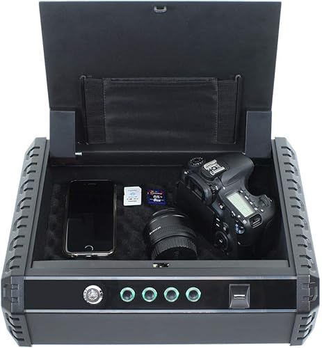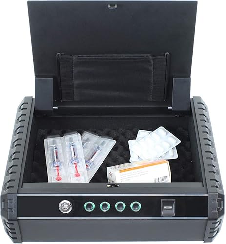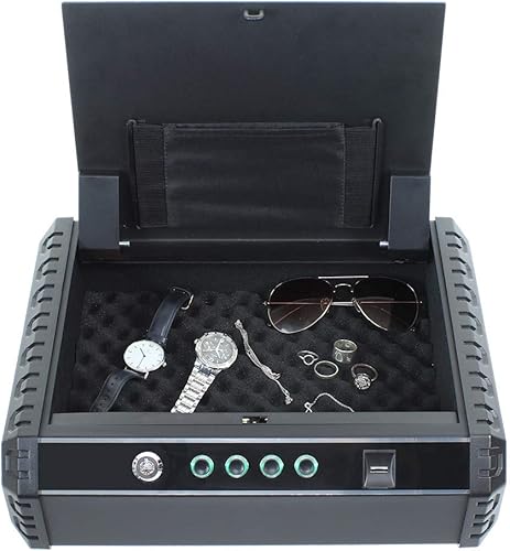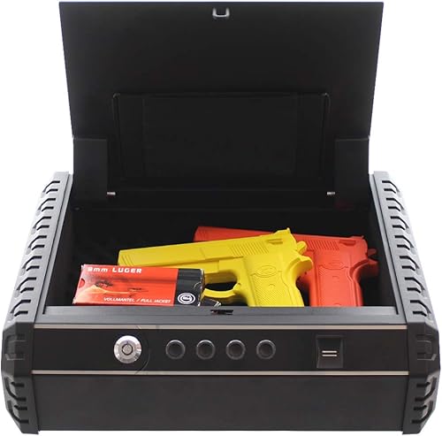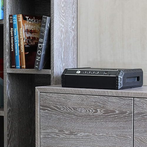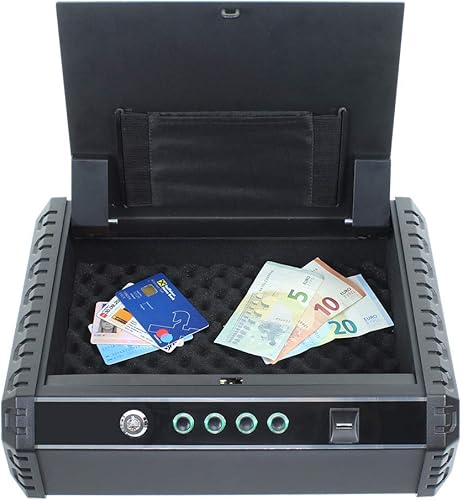 HomeDesign cassetta di sicurezza per pistole ed oggetti di valore HomeDesignWaffen HDW-GM XL, apertura tramite scansione impronta digitale o codice, apertura meccanica di emergenza, di colore nero.