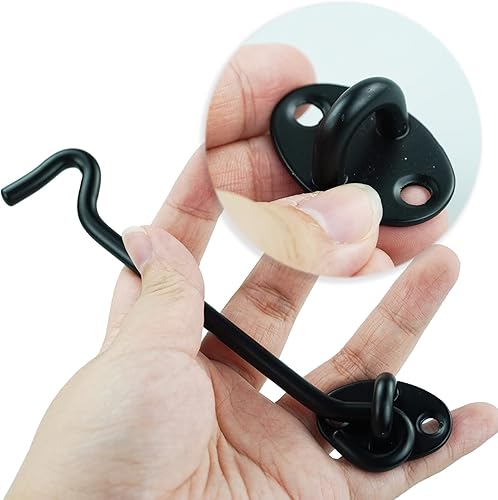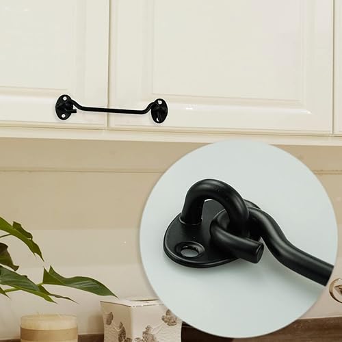 2 ganci tempesta con occhielli, in acciaio inox, per porta basculante in legno, persiane, cancello da giardino, 8 viti di montaggio (15 cm)