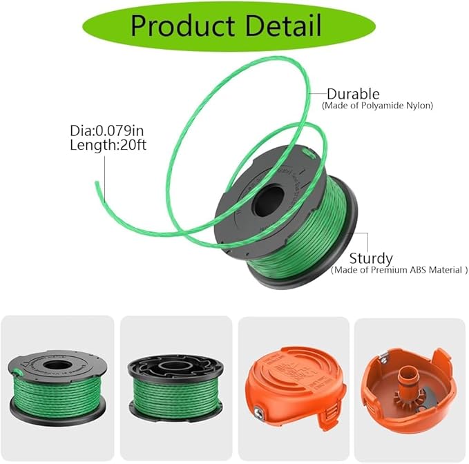 A6486-XJ Linea Trimmer Bobina di Ricambio Compatibile con GL9035, GL8033, STC5433PC, STC5433B,4pcs Bobina di filo di Ricambio per tosaerba Black and Decker, Lunghezza 20 Piedi