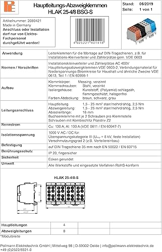 Pollmann - Morsetto di derivazione HLAK 25-4/8 BSG-S, 1 pezzo