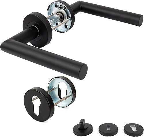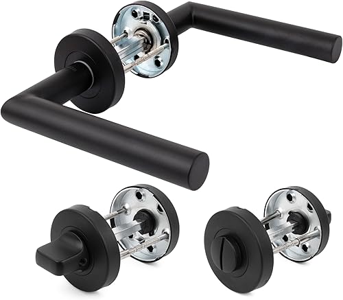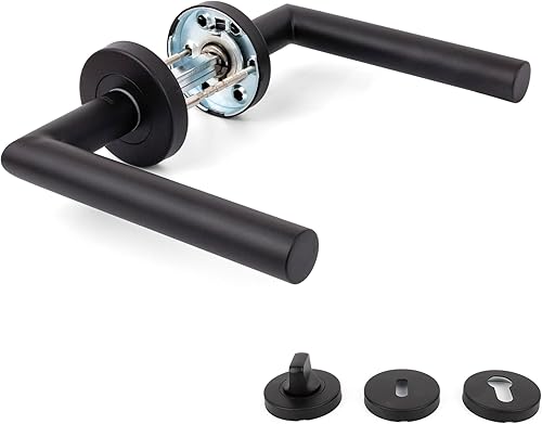 APECS Maniglia rotonda per porta di casa e porte della stanza, in acciaio inox 201, nero opaco, maniglie per porte interne, accessori per rosette, modello L, H-0204-BLM WC