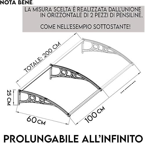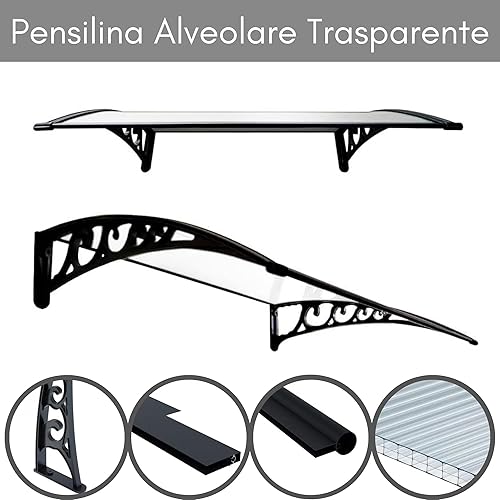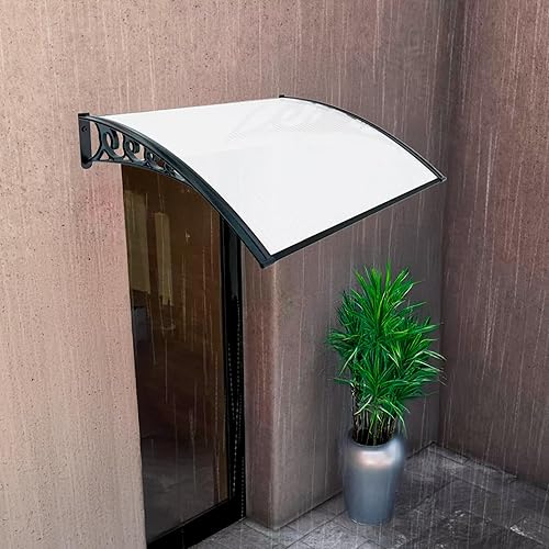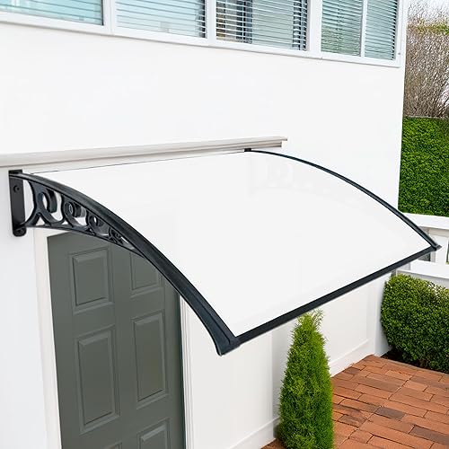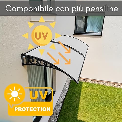 MAKA Pensilina da Esterno in Policarbonato, Tettoia per Esterno in PVC Impermeabile, Tettuccio Parapioggia con Struttura in Polipropilene, Profili in Alluminio Modulabile (200x80 cm bianco)