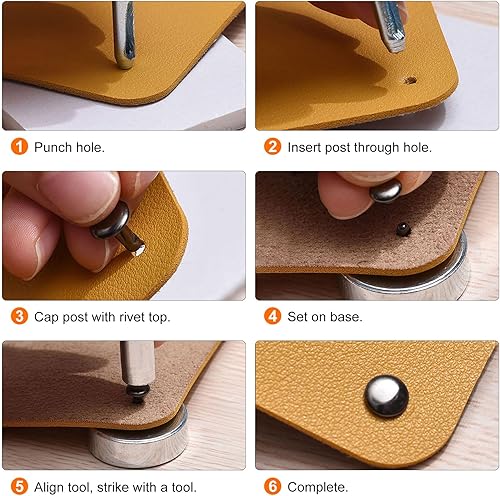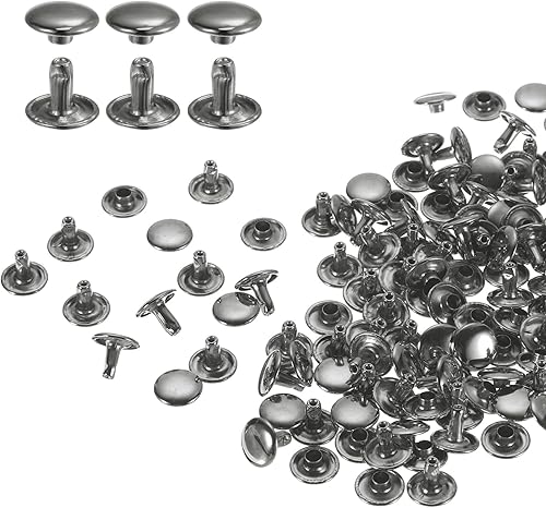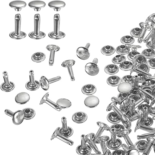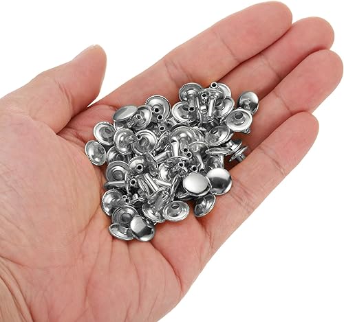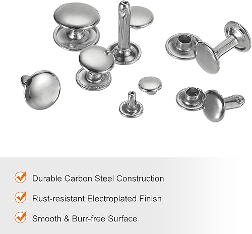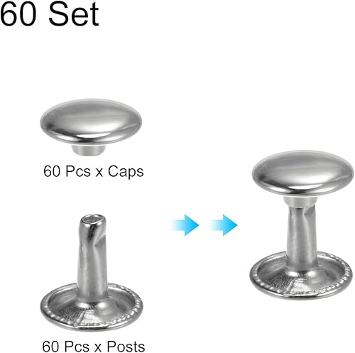 60 Set Doppia Cappuccio Rivetti in Pelle, 9x16mm Tondo Cappuccio Rivetti Tubolari Metallo per Lavorazione Pelle Cintura Tessuto Collare Borsa Riparazione Decorazione, Argento