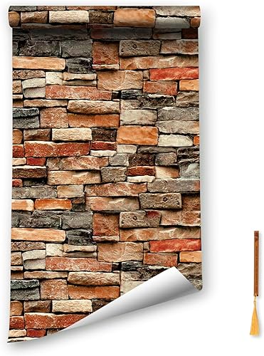 Carta da parati in 44.5x400CM pietra Carta da parati in vinile con mattoni Carta da parati autoadesiva Carta da parati autoadesiva con mattoni rossi