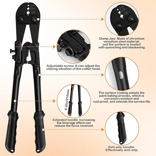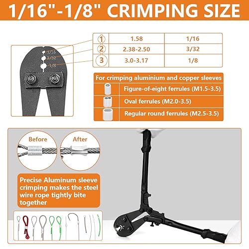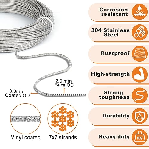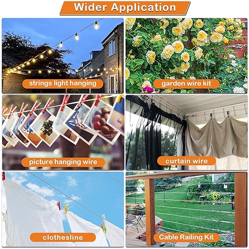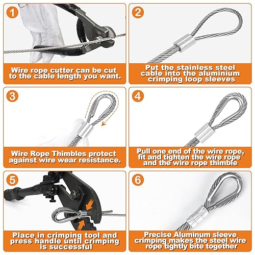 TooTaci Kit di crimpatura per funi metalliche, con cavo in acciaio inossidabile da 30,5 m da 1/8', tagliafili, manicotto ad anello e ditali per funi metalliche, kit per appendere corde di luci