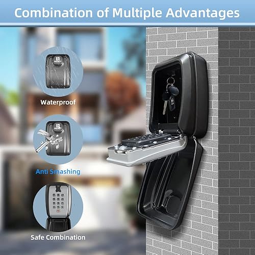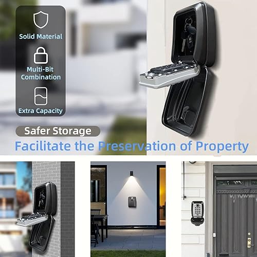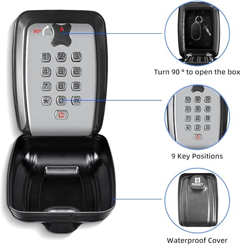 G14 4 cifre Combinazione di Stoccaggio Montaggio a Parete Casa, Pulsante Serratura Box & Shell Protettivo per Esterno Resistente alle intemperie, Grande Capacità, Nero