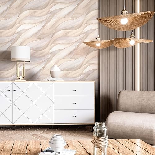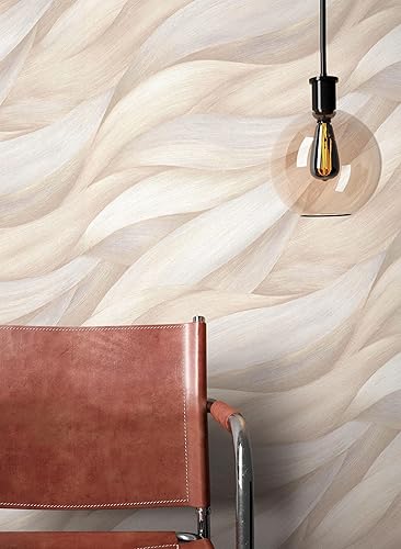 carta da parati Beige Foglia Tessuto non Tessuto - Moderno Taupe Natura Onde Campione Astratte